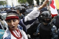 Вчера у стен украинского парламента противники власти пытались устроить митинг. Так оппозиция готовится к визиту в Киев президента России Дмитрия Медведева, запланированному на 17—18 мая. Однако, как оказалось, даже общее число пришедших пикетчиков с обеих сторон меньше, чем милиционеров.