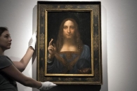 На полотне изображен Иисус Христос в голубых одеяниях, держащий хрустальный шар. Полотно было написано в 1500 годах и долгое время его считали утраченным. В 2017 году его продали за 450,3 млн долларов - что стало самым дорогим произведением искусства, продававшимся на Christieʼs