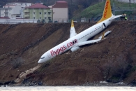 В турецком городе Трабзон пассажирский самолет Boeing 737-800 авиакомпании Pegasus Airlines во время посадки выкатился за пределы взлетно-посадочной полосы и застрял в грязи на краю обрыва.