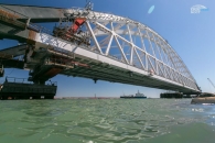 В Керченском проливе началась операция по установке железнодорожной арки Керченского моста. В сентябре установят автодорожную арку