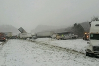На скоростной оживленной автостраде в ДТП попали одновременно более полусотни автомобилей.