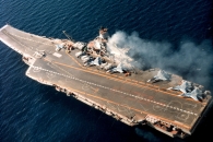Опозоривший Путина и весь российский флот невезучий корабль окончательно стал баржей. Теперь он не только не способен передвигаться своим ходом, но и признан полностью непригодным в качестве взлетной площадки.