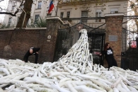 Таким образом британцы протестуют против крупномасштабного наступления на сирийский город Алеппо, которое, как опасается британская пресса, может развернуть Россия на фоне выборов в США.