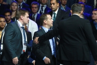 В сети волна шуток по поводу эвакуации 26 октября премьер-министра РФ Дмитрия Медведева вместе с участниками Форума "Открытые инновации" в Сколково в целях безопасности из зала, где проходило мероприятие.