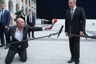 В сети появилась фотография президента РФ Владимира Путина и стоящего на коленях журналиста.