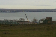 Желающих полюбоваться на будущий Крымский мост в районе Бочарки теперь встречают проволочное ограждение и охрана.