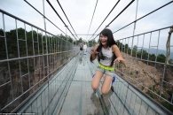 На юго-востоке Китая, в провинции Хунань открылся подвесной стеклянный мост, расположенный на высоте 180 метров.