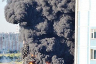 Очевидцы сообщают о сильном пожаре на Москве-реке в районе Марьино. Огромный столб дыма виден за несколько километров.