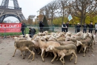 Французские фермеры привезли несколько десятков овец к подножию Эйфелевой башни в Париже. Таким образом они решили выразить свое недовольство экологической политикой правительства.