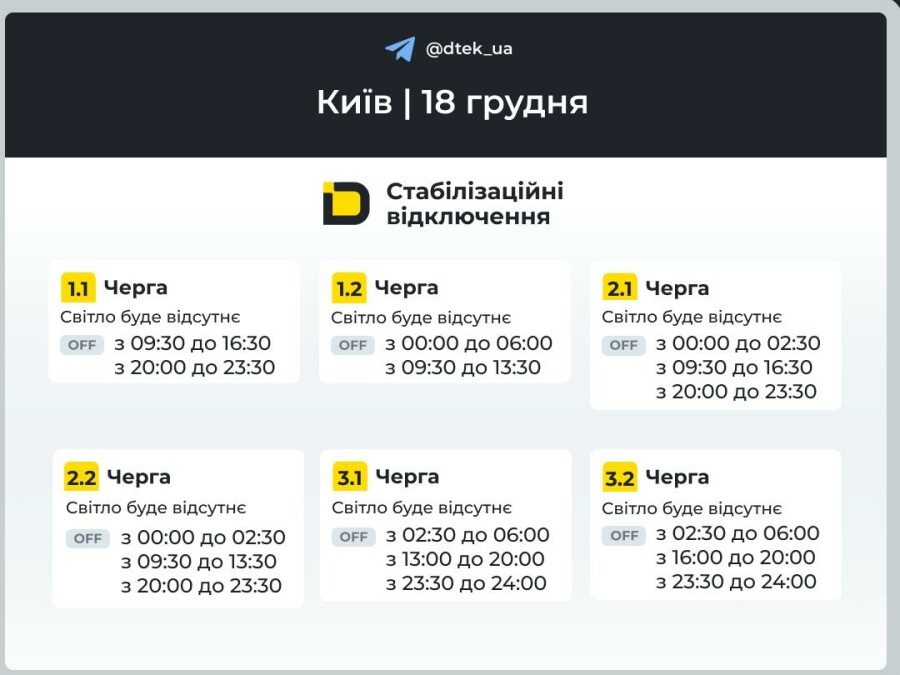 Життя Київ та Київська область: оновлені графіки відключень світла на 18 грудня