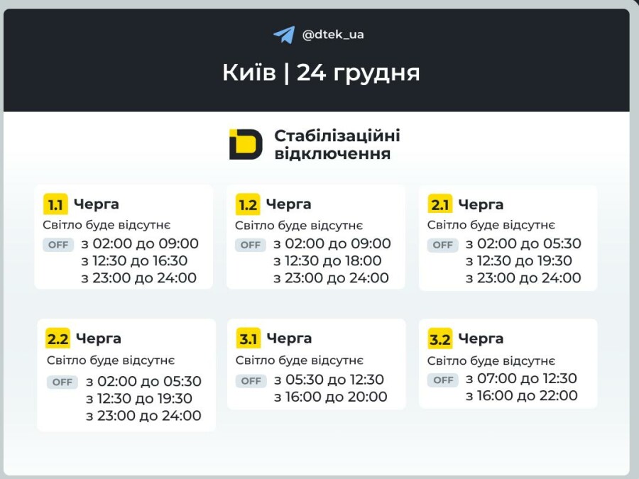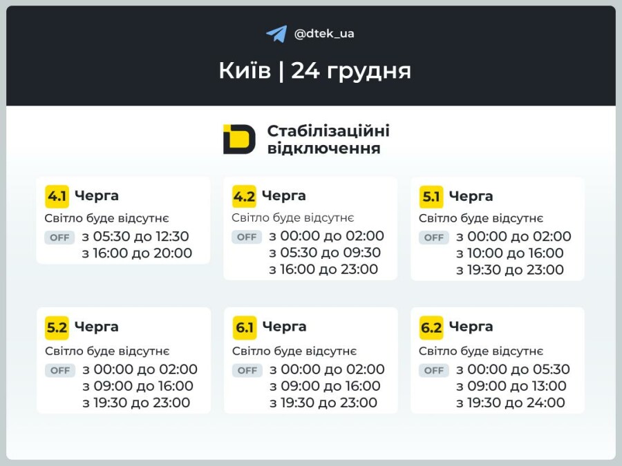 В столиці протягом дня задіяно одразу дві-три черги відключень. Це означає, що населенню доведеться проводити від 3 до 8 годин без світла.