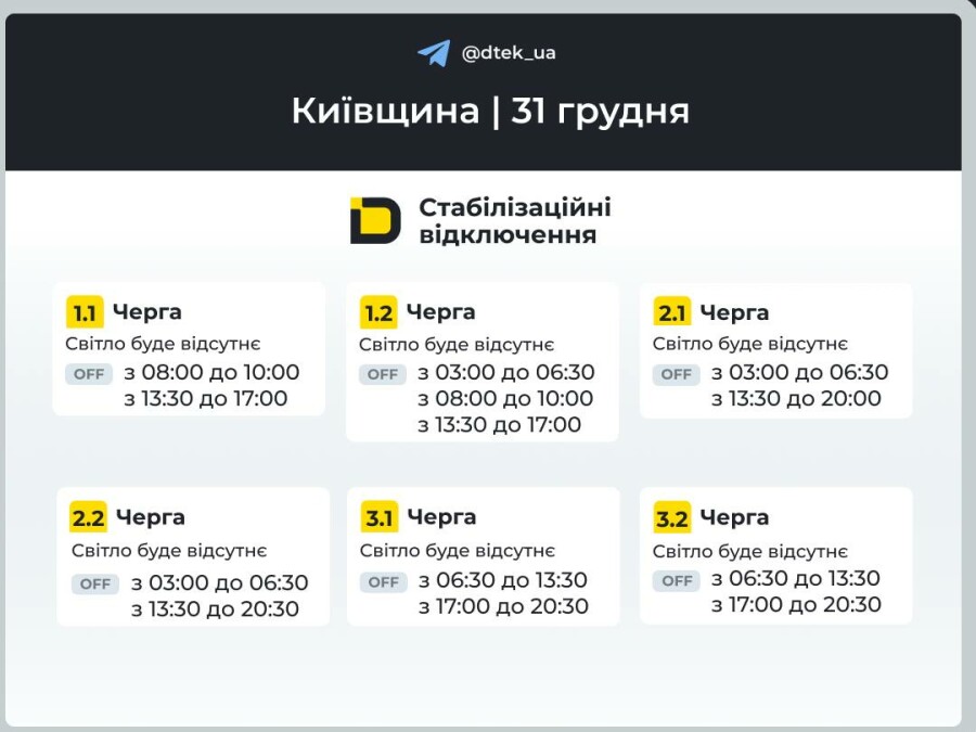 На Київщині протягом дня задіяно одразу дві-три черги відключень. Це означає, що населенню доведеться провести багато годин без світла.