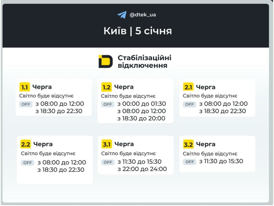 В столиці протягом дня задіяно одразу дві-три черги відключень. Це означає, що населенню доведеться проводити від 3 до 8 годин без світла.