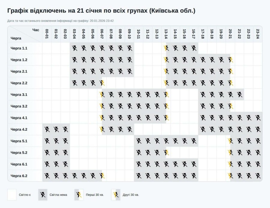 ВІЙНА В Україні Київська область: оновлені графіки відключень електроенергії на 21 січня