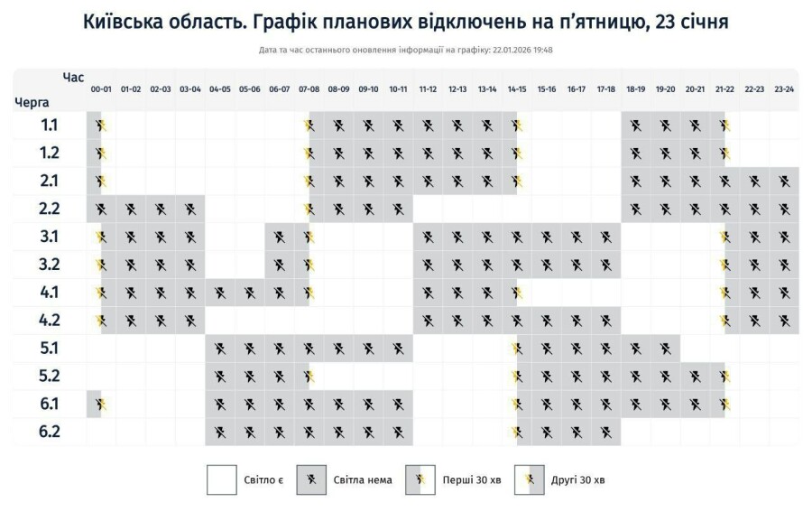 Після майже добового блекауту на Київщині протягом дня задіяно одразу три-чотири черги відключень.