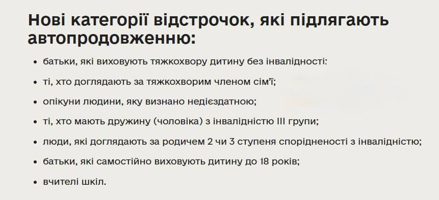 До системи додано відстрочки для 7 категорій українців, при цьому автопродовження зберігається для 14 раніше визначених категорій.