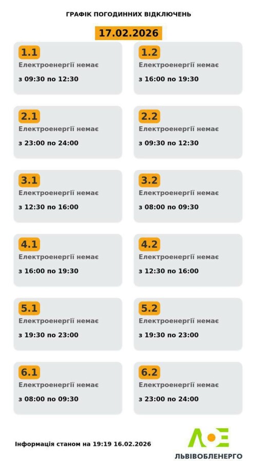 ВІЙНА В Україні Львів: Графік стабілізаційних відключень світла на 17 лютого