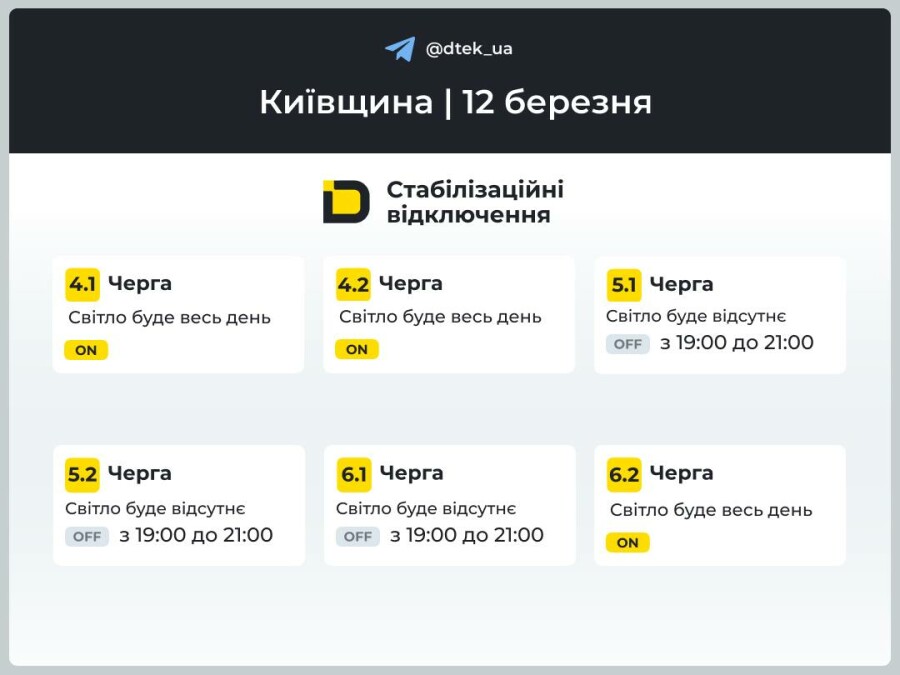 ВІЙНА В Україні Київська область: оновлені графіки відключень електроенергії на 12 березня