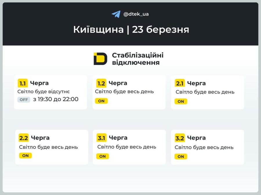 Протягом доби, за розпорядженням НЕК "Укренерго", графік може змінюватися!