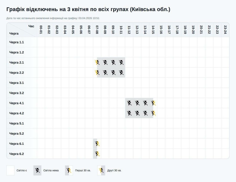 Протягом доби, за розпорядженням НЕК "Укренерго", графік може змінюватися!