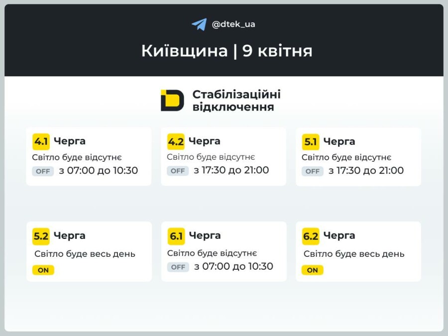 ВІЙНА В Україні Київська область: графік погодинних відключень електроенергії на 9 квітня