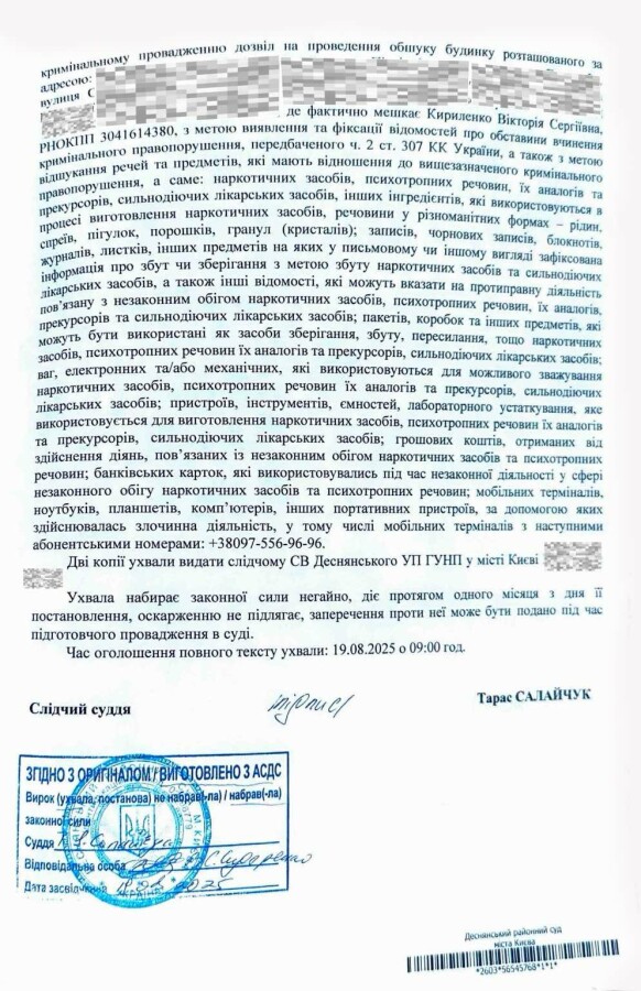 У публічному просторі обговорюють історію, що пов'язана з топ-менеджеркою «Київстар» Кириленко Вікторією Сергіївною. У 2025 році в Києві правоохоронці під час обшуку її помешканні вилучили значні обсяги кристалічної речовини. За результатами експертизи Київського науково-дослідного експертно-криміналістичного центру МВС України встановлено, що це особливо небезпечна психотропна речовина PVP, відома в наркосередовищі як «сіль». https://antikorpravda.com/obshuk-u-topmenedzherki-kiivstar-viktorii-kirilenko-znajdeno-narkotiki-u-velikij-kilkosti/